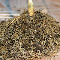 Ik heb dus een volwassen peperplant gebruikt aan het einde van het seizoen. Het mooie van een volwassenplant is dat de stam al mooi verhout is. Nadat ik alle pepers heb geoogst, heb ik hem helemaal teruggesnoeid tot de hoogte die ik wil hebben. Bonsai planten worden kunstmatig klein gehouden door takken- en wortelsnoei. Dus ook de wortels kregen een snoeibeurt.