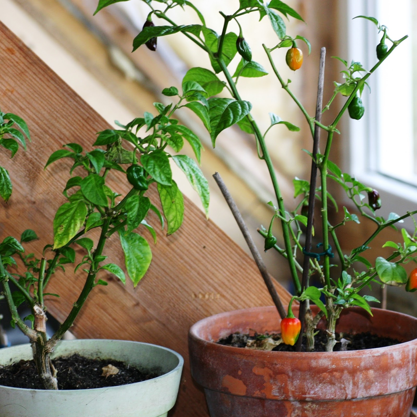 Een paar weken eerder heb ik al eens geschreven over hoe je de peperplanten kunt overwinteren. Hier heb ik je tips gegeven over hoe je dit het beste kunt gaan doen. Mijn planten staan nu zo’n anderhalve maand binnen en doen het tot nog toe prima. Ik heb een aantal planten in de vensterbank in de woonkamer staan. Dit zijn eigenlijk voor mij gewoon kamerplanten. Deze staan het hele jaar al binnen. Dan heb ik boven op zolder nog een aantal staan. Deze stonden de zomer buiten en hebben daar nu een plaatsje gekregen. Daarnaast heb ik ook nog 3 op een koude slaapkamer staan.