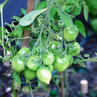 Ik heb van doorzichtig plastic golfplaten een kastje gemaakt. De gehele zomer lagen de zijkanten boven op het dak, maar nu met de wat koudere temperaturen hangen ze naar beneden. Zo zijn de tomaten beschermd tegen de kou. Het is ongelofelijk, maar deze tomaten zijn totaal niet aangetast door de schimmelziekte. Een aantal planten hangt nog vol met tomaten. Hopelijk rijpen ze nog aan de plant. Mocht er nu dan toch nachtvorst komen, dan haal ik de groene tomaten van de plant af en krijgen ze een plekje in de vensterbank. Van de groene tomaten kun je ook heerlijke tomatenchutney maken zoals ik vorig jaar deed.