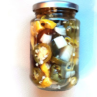 Aangezien er nachtvorst voorspelt was, heb ik ook de groene Jalapeños geoogst. Het waren er echt heel veel. Ik heb dit jaar verschillende soorten gekweekt en van de meeste had ik 2 planten. Ik geloof ongeveer 10 planten. Tja en wat doen je dan met deze grote oogst: verwerken. Een aantal heb ik bewaard als lekker hapje in de vorm van een Jalapeño Popper. Je snijdt ze doormidden, haalt de zaden er uit en vult ze met roomkaas. Daarna omwikkel je ze met spek en dan in de oven! Echt heerlijk. De andere heb ik samen met de Aji limon ingemaakt in azijn met wat ui en mijn mini bloemkool. In totaal heb ik 6 potten kunnen vullen. Kunnen we de winter weer doorkomen!