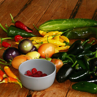 Zou het dan nu toch echt de laatste zomeroogst zijn? De laatste oogst van de warmteminnende planten. Tja je weet het nooit. Ik denk namelijk nog niet helemaal, aangezien er nog pepers aan mijn planten groeien. Zolang er geen echte nachtvorst is zullen deze nog wel door gaan. Van de week dacht ik: laat ik kijken wat ik nog uit de tuin kan halen. Ik begon met een kleine bakje, maar al snel heb ik een grotere gehaald. Ongelofelijk wat er weer uit mijn tuin kwam. De laatste tomaten en heel veel pepers… En zelfs nog een komkommer. Kun je zien, dat je zonder kas en op een klein stukje grond heel veel kunt kweken tot diep in de herfst.