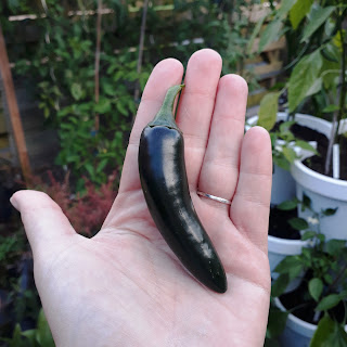 Dit geldt ook zeker voor de groente uit de tuin. Nu de oogst langzaam op gang komt, kom ik er weer achter hoe fijn en lekker dat is. Deze week heb ik voor het eerst weer meerdere malen gegeten uit de tuin. En ook de eerste peper kon ik niet meer laten hangen. Ik had al eerder weer een Jalapeño peper in de supermarkt gekocht, maar die viel erg tegen. Niet alleen qua smaak, maar helemaal qua pittigheid. Dit was niets anders dan een groene paprika. Maar deze eerste Jalapeño peper uit de tuin, was totaal anders. Heerlijk heet en fris van smaak. Dit is een Jalapeño M, ook wel Jalapeño jumbo of Jalapeño Santiago genoemd. Deze is iets groter dan de normale, alleen ik heb hem eerder geoogst. Je kunt de pepers natuurlijk ook rood oogsten. Dat ga ik ook zeker later doen om ze te drogen en te roken zodat ik Chipotle pepers heb, die ik misschien wel ga gebruiken voor een saus. Deze week dus veel geoogst.