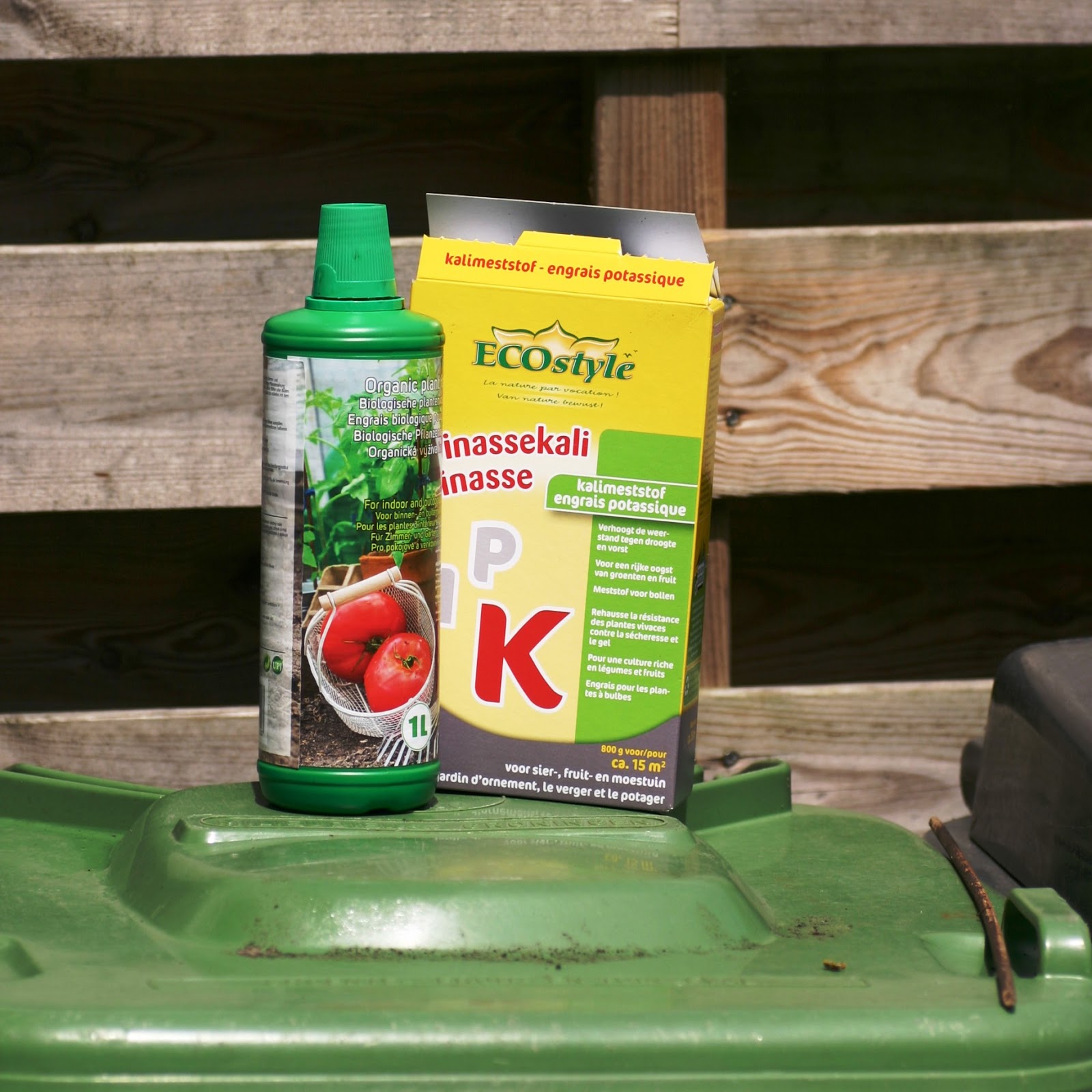 Als je planten in bakken of potten kweekt doe je er sowieso goed aan om bij te voeden. Er zijn verschillende soorten voeding omdat iedere soort plant het goed doet bij verschillende mineralen. Je kunt hele handige plaatjes op internet vinden met bladeren met verschillende kleuren zodat je kunt zien wat je plant te kort komt. Over het algemeen hebben bolgewassen zoals knoflook en aardappels extra kali nodig en doen tomaten het goed bij Epsonzout (bitterzout). Ik heb ook via een peperforum een receptje gevonden van Noekepoekesap. Dit wordt ook gemaakt met Epson zout in combinatie met onder andere koffie en bier. Dit geef ik aan pepers, tomaten en aubergine. Daarnaast krijgen de pepers Chilifocus en combineer ik dit met vloeibare organische mest die ik bij de Action heb gekocht.