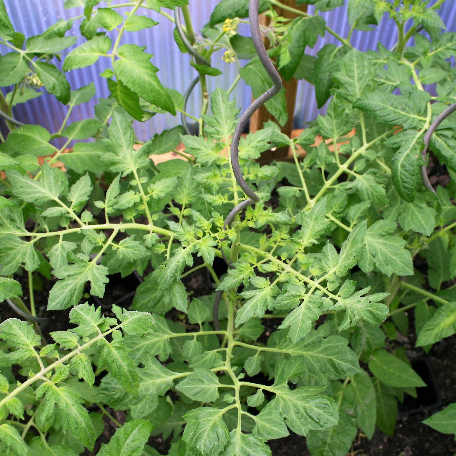 Mijn tomaten staan gelukkig in mijn afdak XL, want al dat water hadden ze niet leuk gevonden en met deze temperaturen loert de schimmelziekte ook. Om dit te voorkomen in de kas, moet je je tomaten snoeien. Tenminste dat doe ik, omdat ze bij mij vrij dicht op elkaar staan en er zo geen ventilatie is. Ventilatie zorgt dat de schimmel dan minder kans krijgt, omdat het eventuele water snel kan opdrogen. Ik knip ongeveer 1/3 van het blad af. Ook de bladeren van planten die elkaar kruizen, krijgen een snoeibeurt. Daarnaast dief ik de stamtomaten en dat zijn bij mij bijna alle soorten. In de oksel van de plant groeit vaak een nieuwe ‘tak’. Deze kun je er gemakkelijk uitbreken. Omdat ik bijna alleen stamtomaten heb, ondersteun ik de tomaten met een tomatenspiraal, maar het kan ook met bamboestokken of touwtjes vanaf boven als je een kas hebt.