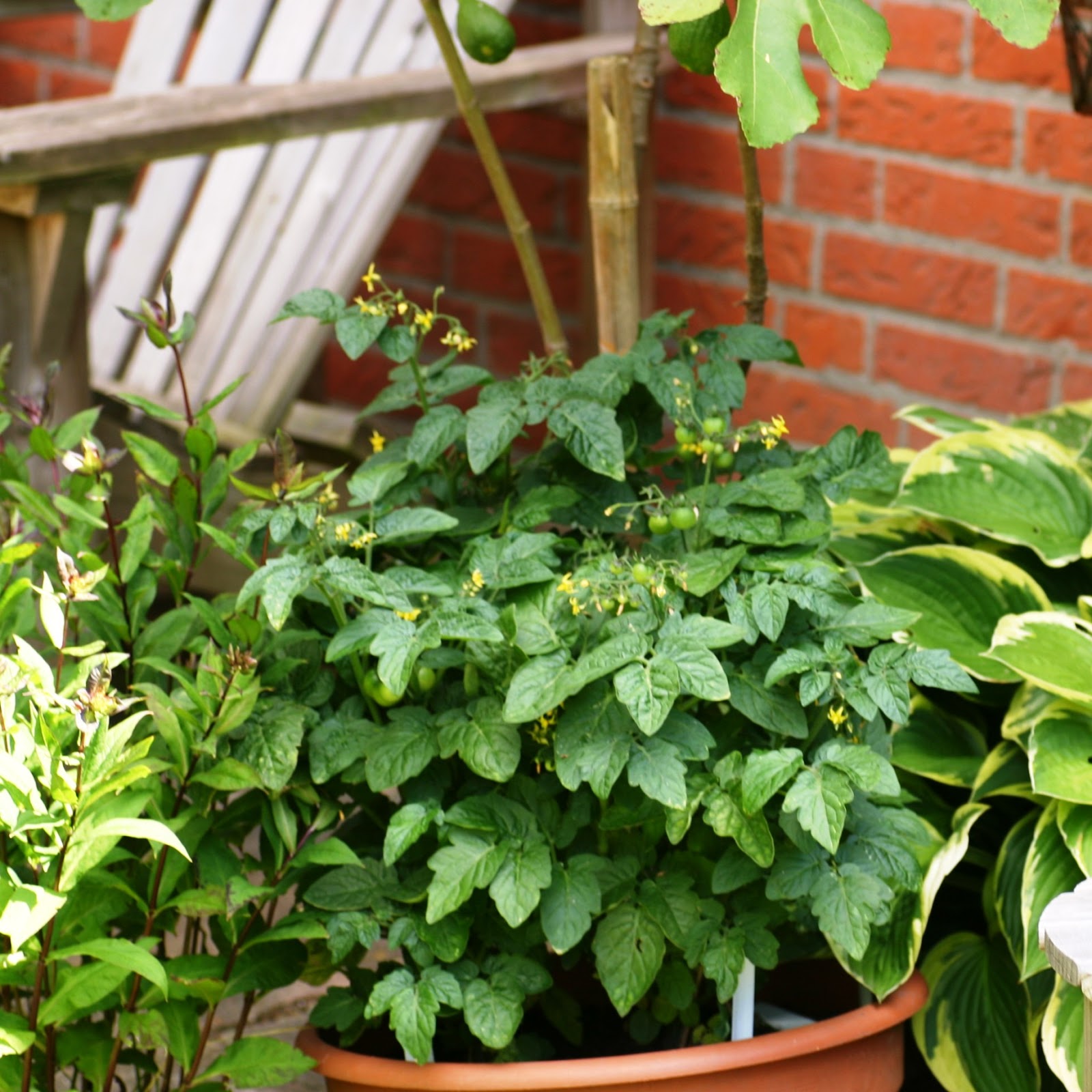 Zoals ik net schreef, staan de meeste van mijn tomaten onder het afdakje alleen helaas pasten ze daar niet allemaal en heb ik een aantal in potten gezet. De lage kerstomaat kweek ik bijna altijd in potten en is elk jaar minder gevoelig voor de schimmel dan de andere soorten. Ook de Lemon Tree had andere jaren er minder last van en dus heb ik de keuze gemaakt om die in een pot te kweken. De Heinz Ketchup tomaat staat ook in een emmer en blijft mooi compact dus ook erg geschikt voor een pot.