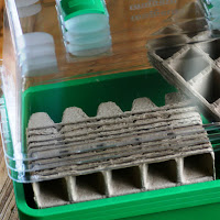 Er zijn verschillende methodes om te komen tot de eerste miniplantjes. Zelf gebruik ik voor de pepers en tomaten cocospluggen. Ik vind het ideaal om dat ze stevig zijn en individueel. Dat is vooral het verschil met een grote bak. Als je later de plantjes verplant beschadig je de wortels niet bij individuele potje. Je kunt ook kiezen voor (zelf) geperste potjes met een potjesperser of potjes maken van krantenpapier met een potjesmaker. Ook kun je zelf knutselen met eierdozen of plastic bekers gebruiken. Een andere methode om pepers te laten ontkiemen is de Deno methode. Je doet dan de zaadjes in vochtige koffiefilters in een plastic zakje. Ik heb dit nog nooit geprobeerd, maar hoor er wel goede ervaringen over.